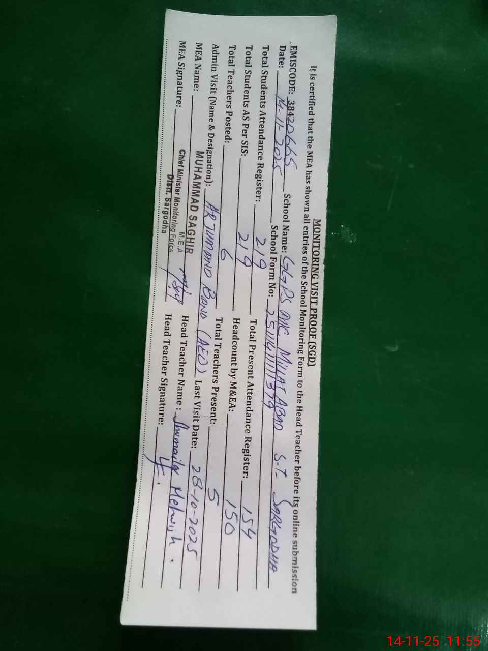 | EMIS Code: 38420665 | Name of School: GGPS MC MILLAT ABAD SARGODHA | |||