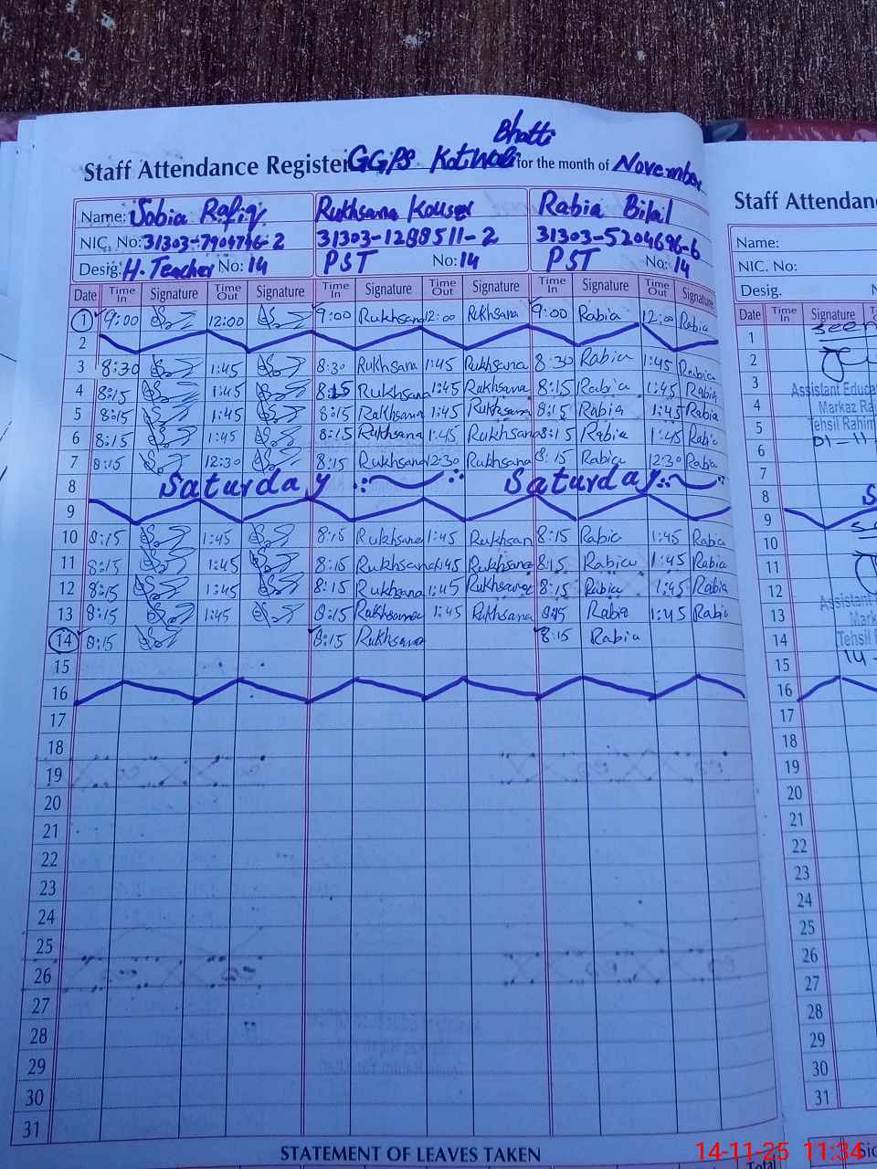 | CNIC | Full Name | Designation | R/C | Absence During Last Calender Month |
