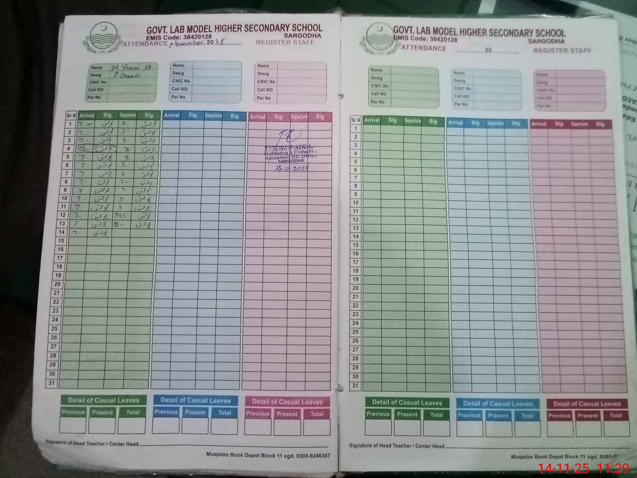 | CNIC | Full Name | Designation | R/C | Absence During Last Calender Month |
