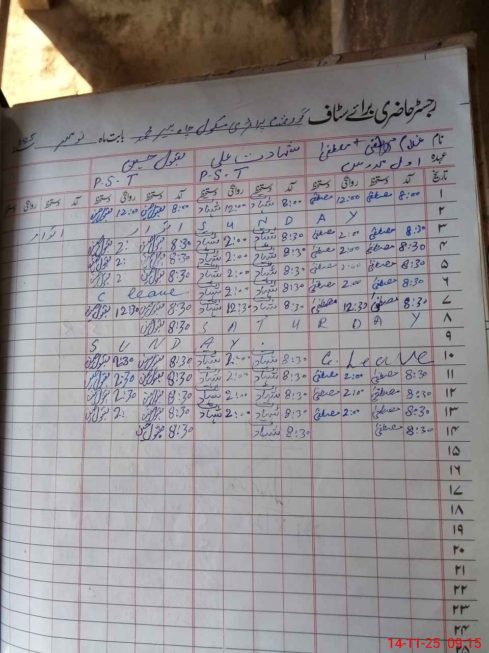 | CNIC | Full Name | Designation | R/C | Absence During Last Calender Month |