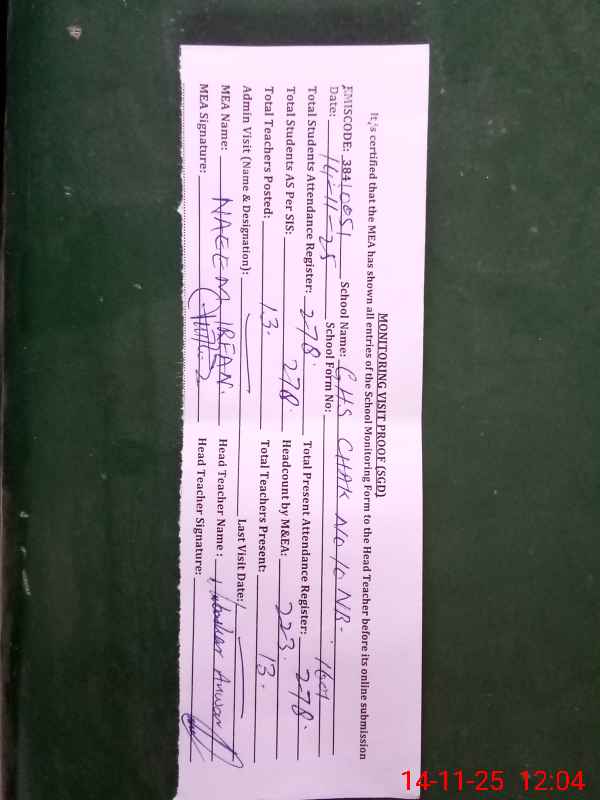 | EMIS Code: 38410051 | Name of School: GHS CHAK NO.10 NB | |||