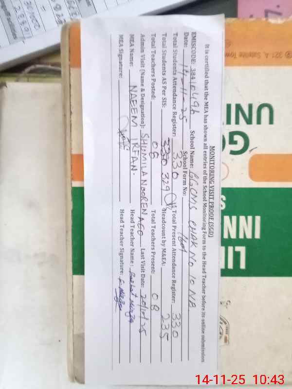 | Attendance Register | Head Teacher | MEA with School | Visit Proof |