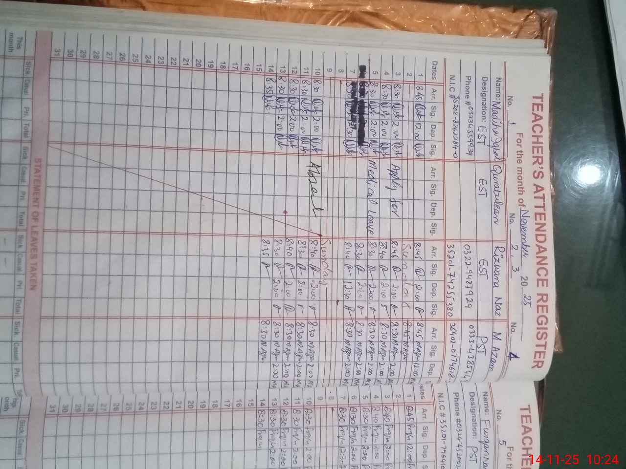 | Name: Ma**** Iq**** Designation: (School Headmaster's/Headmistress's) EST Phone/Cell Number: 03**** |