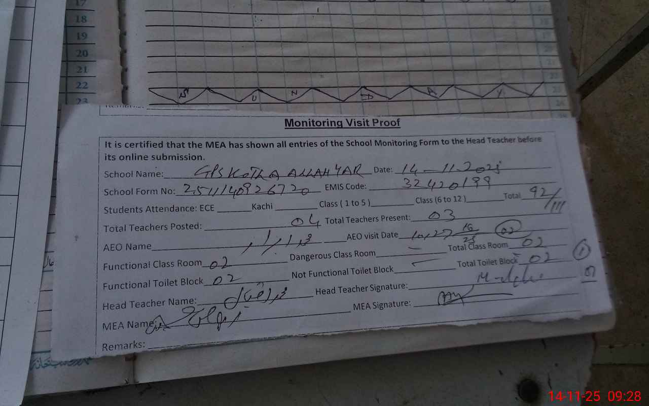 | EMIS Code: 32420199 | Name of School: GPS KOTLA ALLAH YAR | |||
