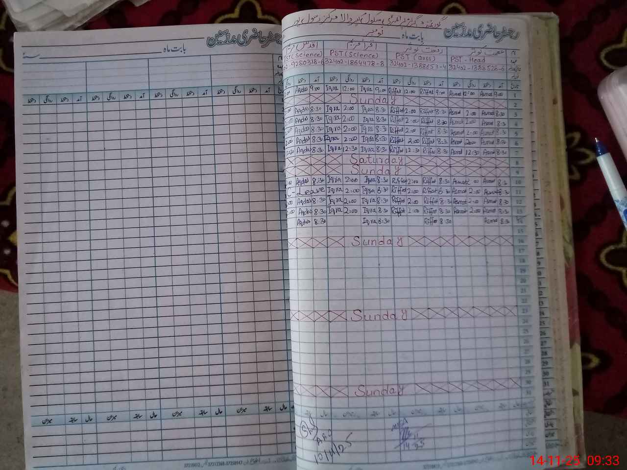 | CNIC | Full Name | Designation | R/C | Absence During Last Calender Month |