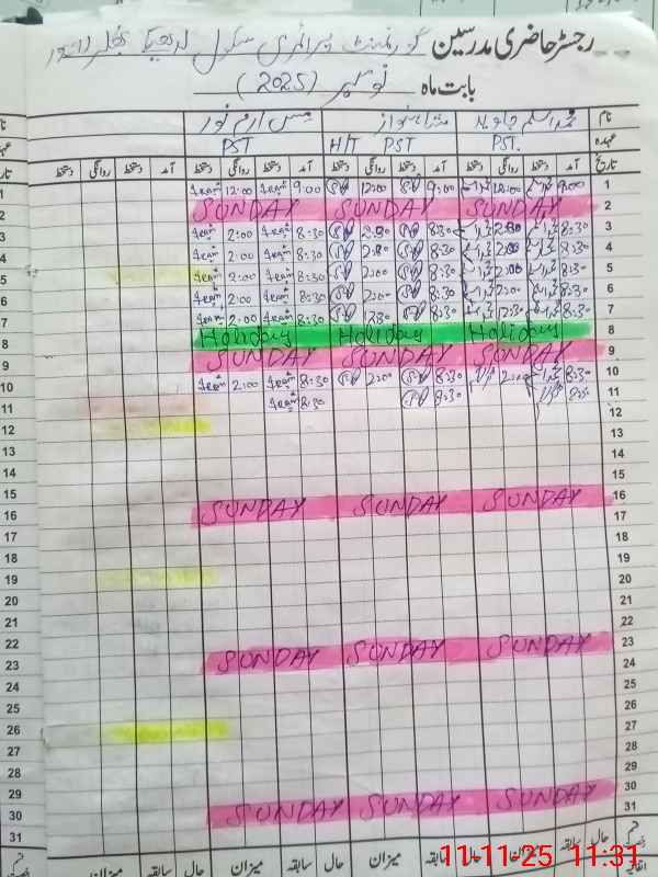 | CNIC | Full Name | Designation | R/C | Absence During Last Calender Month |