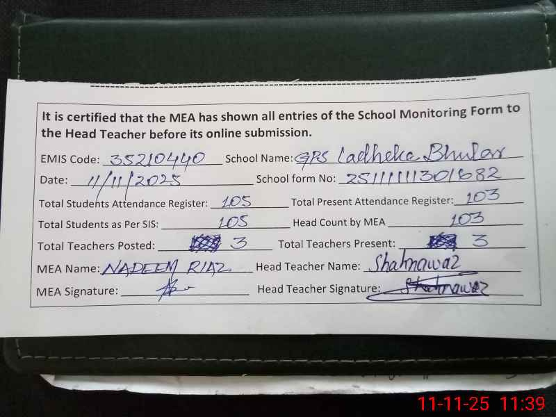 | Certified that this School was Inspected by the Undersigned MEA/DMO Today and the Information Stated Above is as Per Record. | |||||