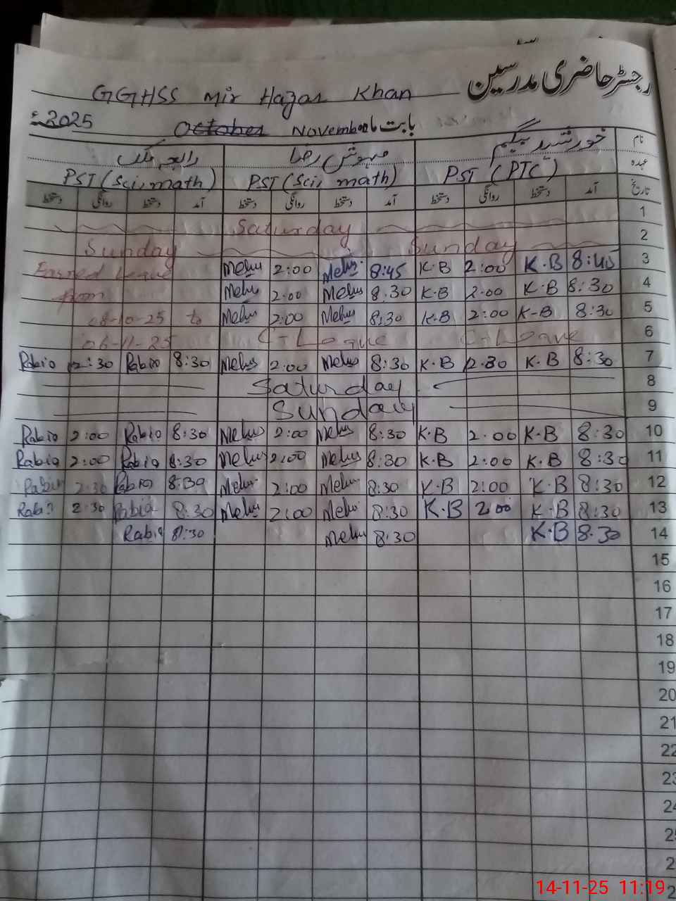 | 32**** | Sa**** Ba**** | Contract | 3 | 0 | 0 | 0 | 0 | 0 | 0 | 0 | 3 | Casual | |
