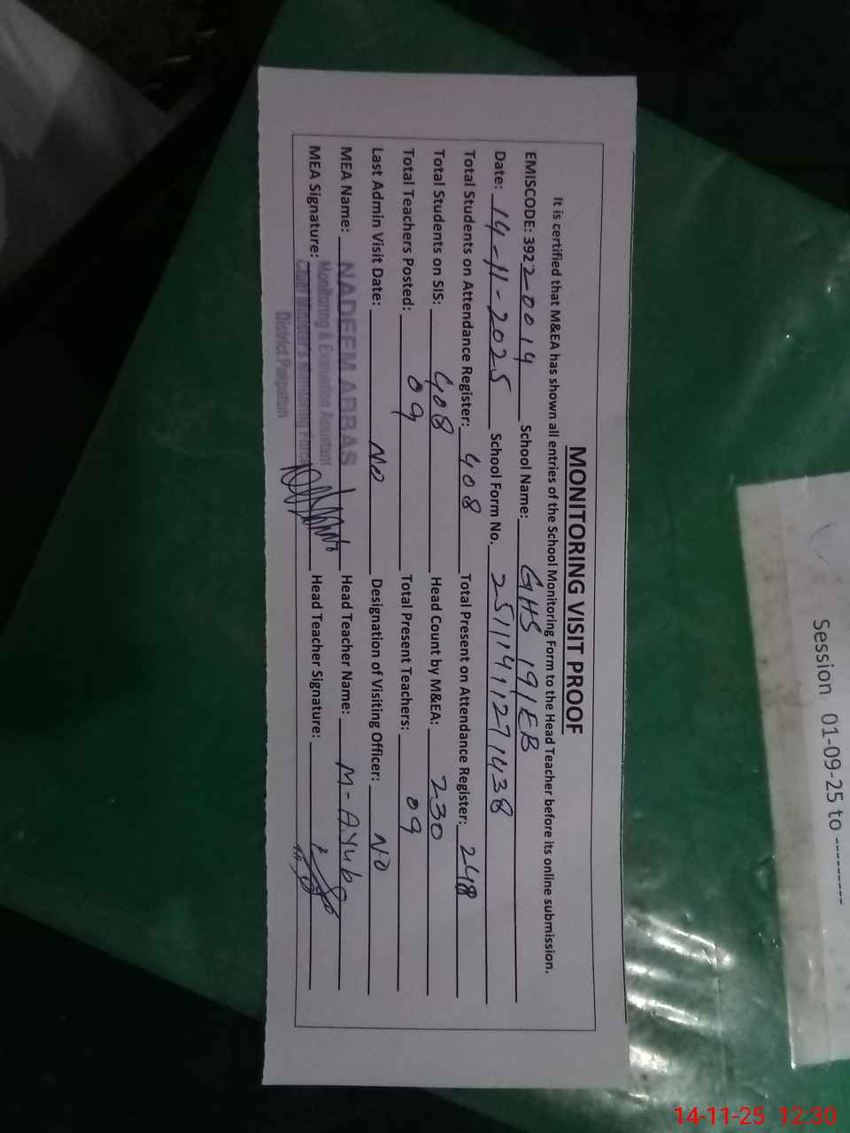 | EMIS Code: 39220014 | Name of School: GHS 19 EB ARIFWALA | |||