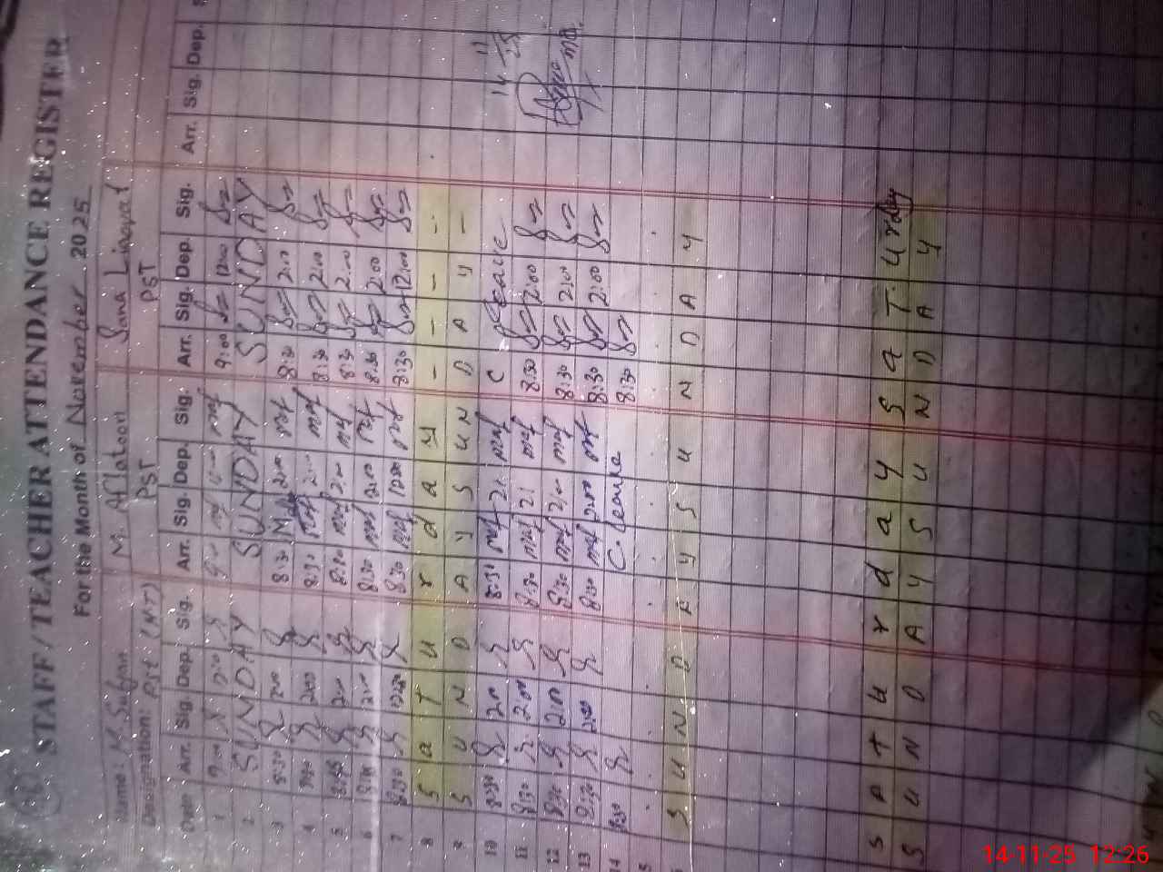 | CNIC | Full Name | Designation | R/C | Absence During Last Calender Month |