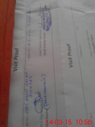 | School Visited by School Health & Nutrition Supervisor (No. of Visits) | Name1: | Sultan Saeed | Name2: | Nil | |