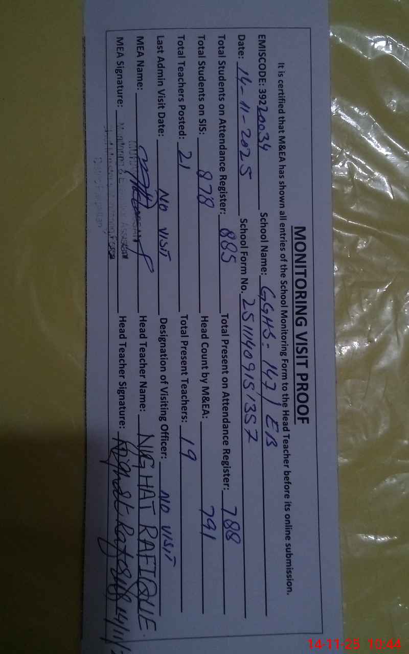 | EMIS Code: 39220034 | Name of School: GGHS 147 EB | |||