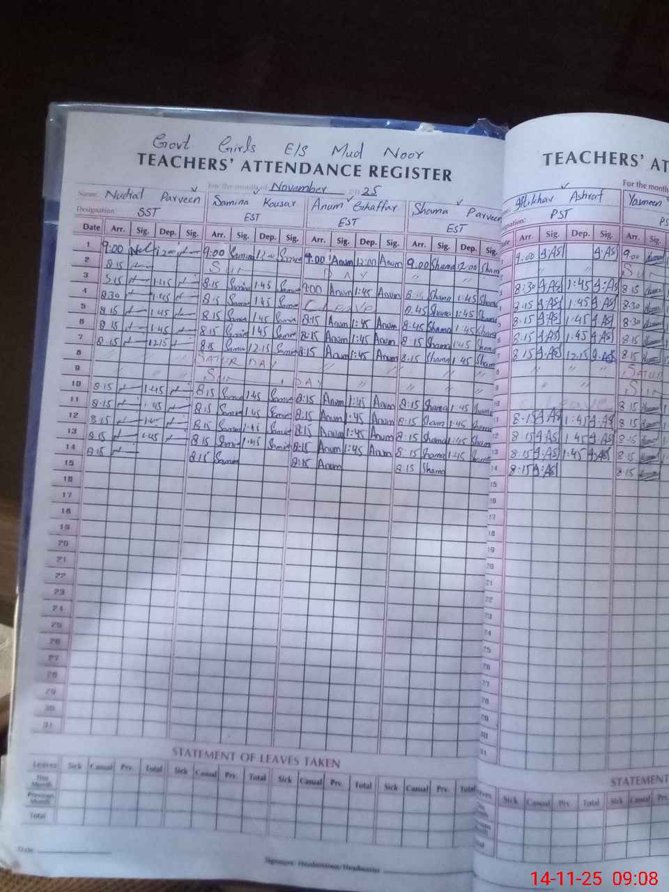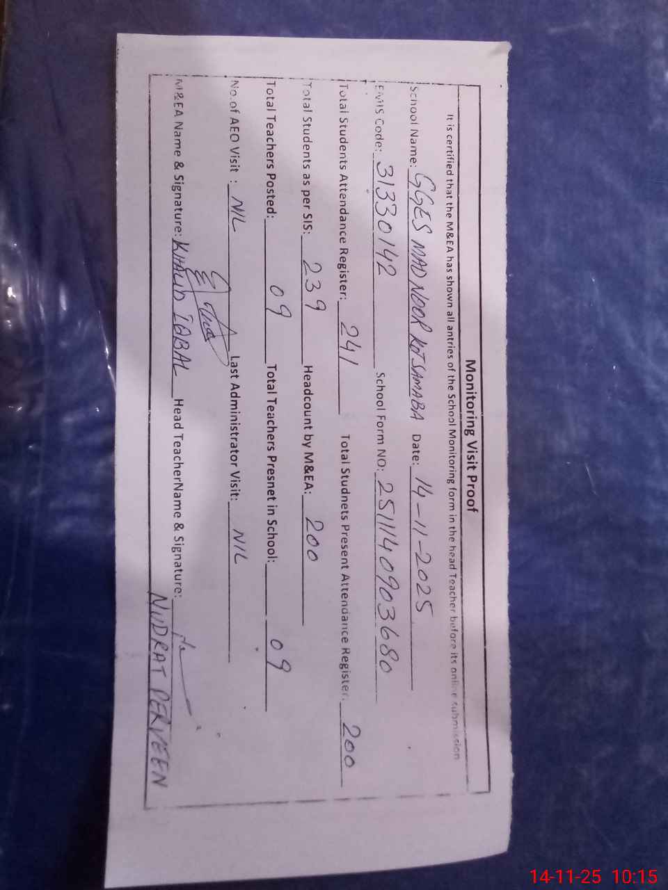 | Attendance Register | Head Teacher | MEA with School | Visit Proof |