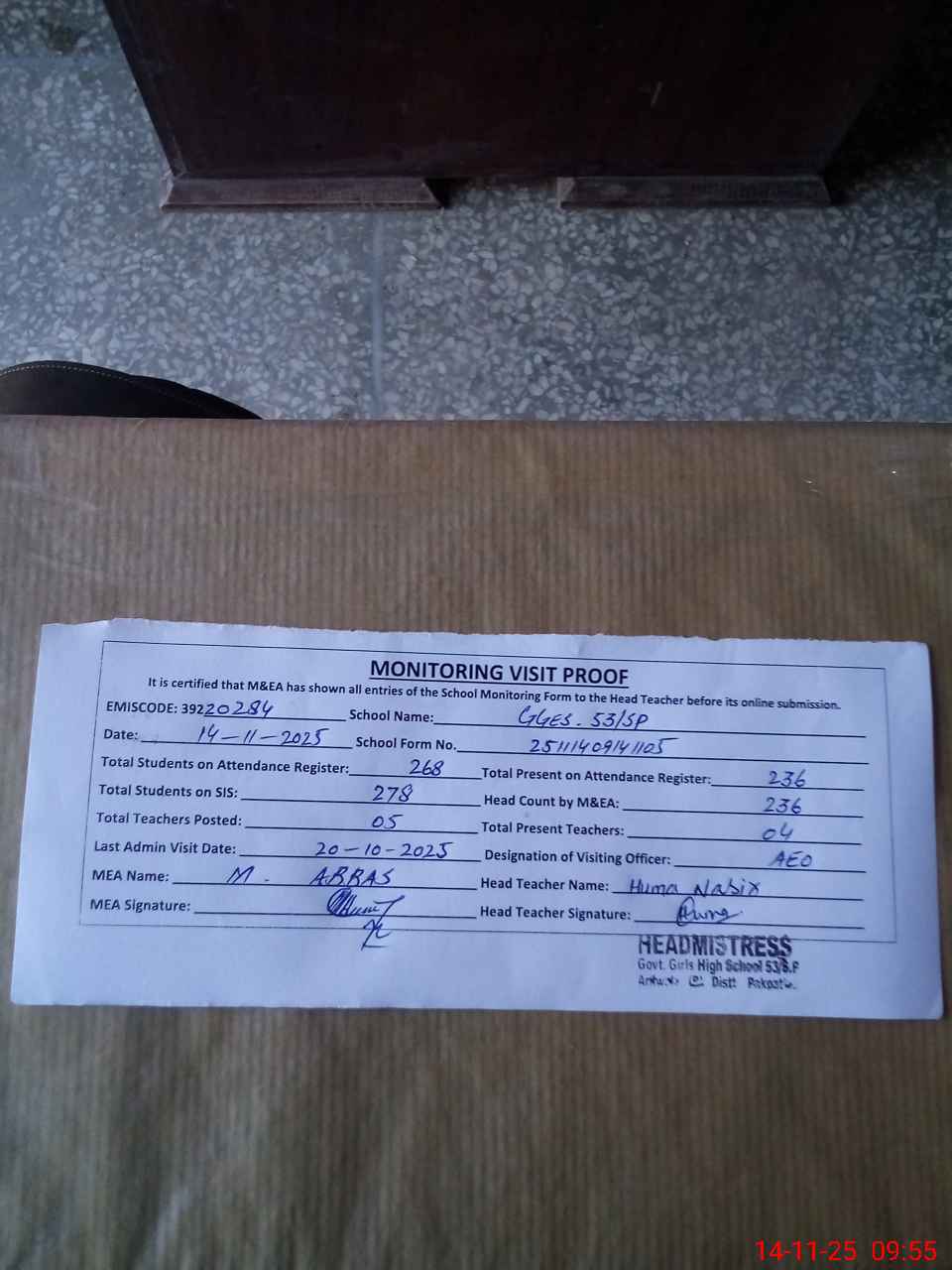| EMIS Code: 39220284 | Name of School: GGES 53 SP POST OFFICE JEVEN SHAH | |||