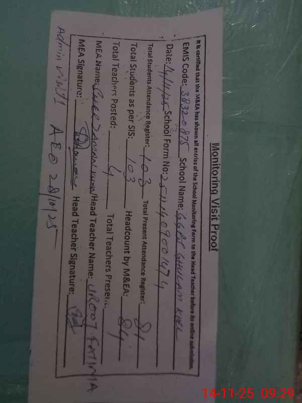 | EMIS Code: 38320875 | Name of School: GGPS GHULAM KHEL | |||
