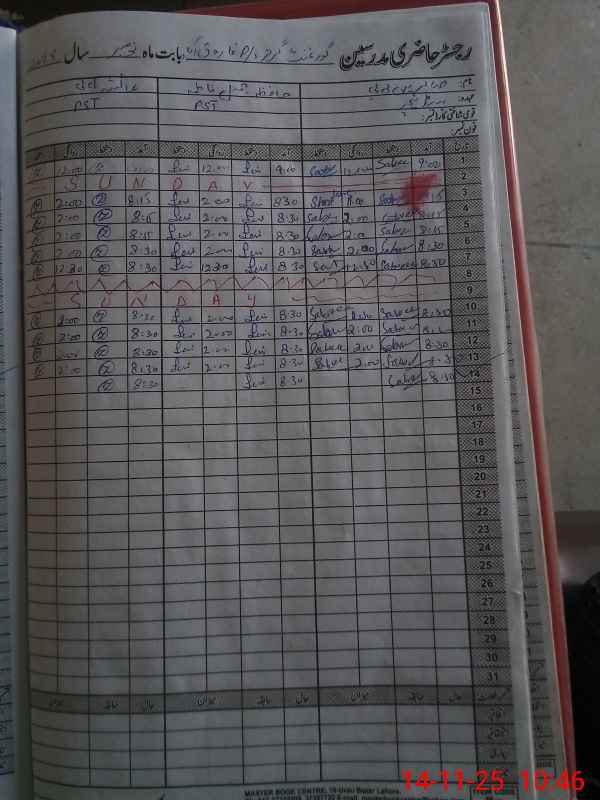 | CNIC | Full Name | Designation | R/C | Absence During Last Calender Month |
