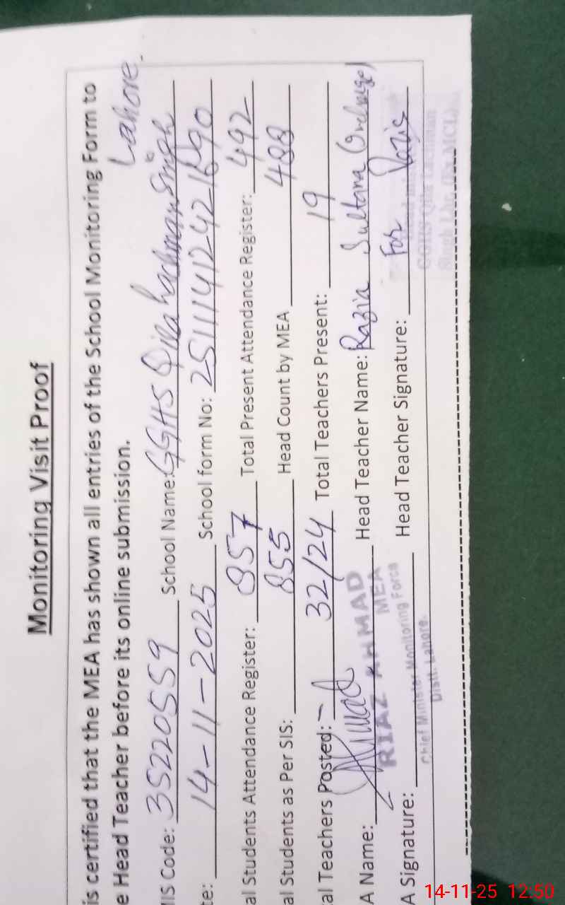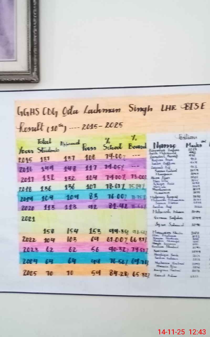 | EMIS Code: 35220559 | Name of School: GGHS QILA LACHMAN SINGH (EX-MCL) | |||