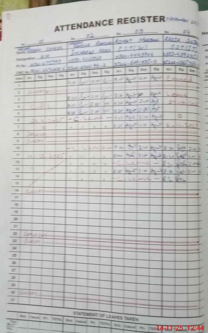 | 35**** | Kh**** | NQ | 0 | 0 | 0 | 0 | 0 | 0 | 0 | 0 | 0 | Absent (Un-Authorized) | |
