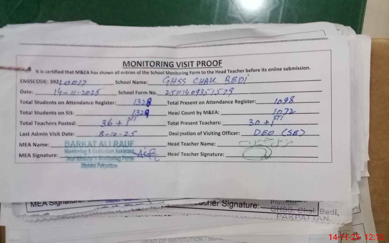| EMIS Code: 39210017 | Name of School: GHSS CHAK BEDI | |||