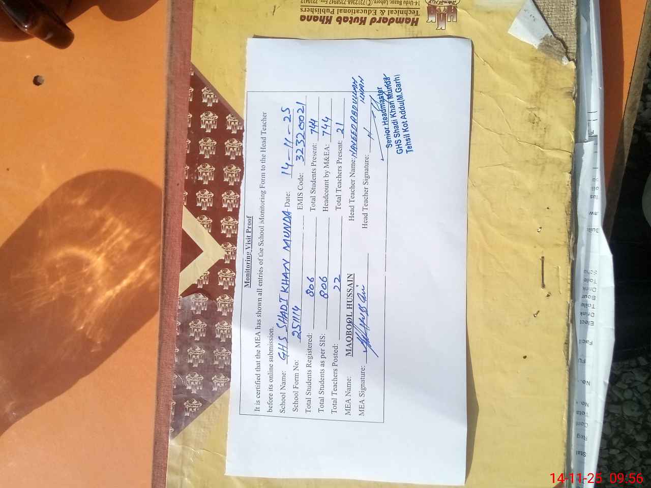 | EMIS Code: 32320021 | Name of School: GHS SHADI KHAN MUNDA | |||