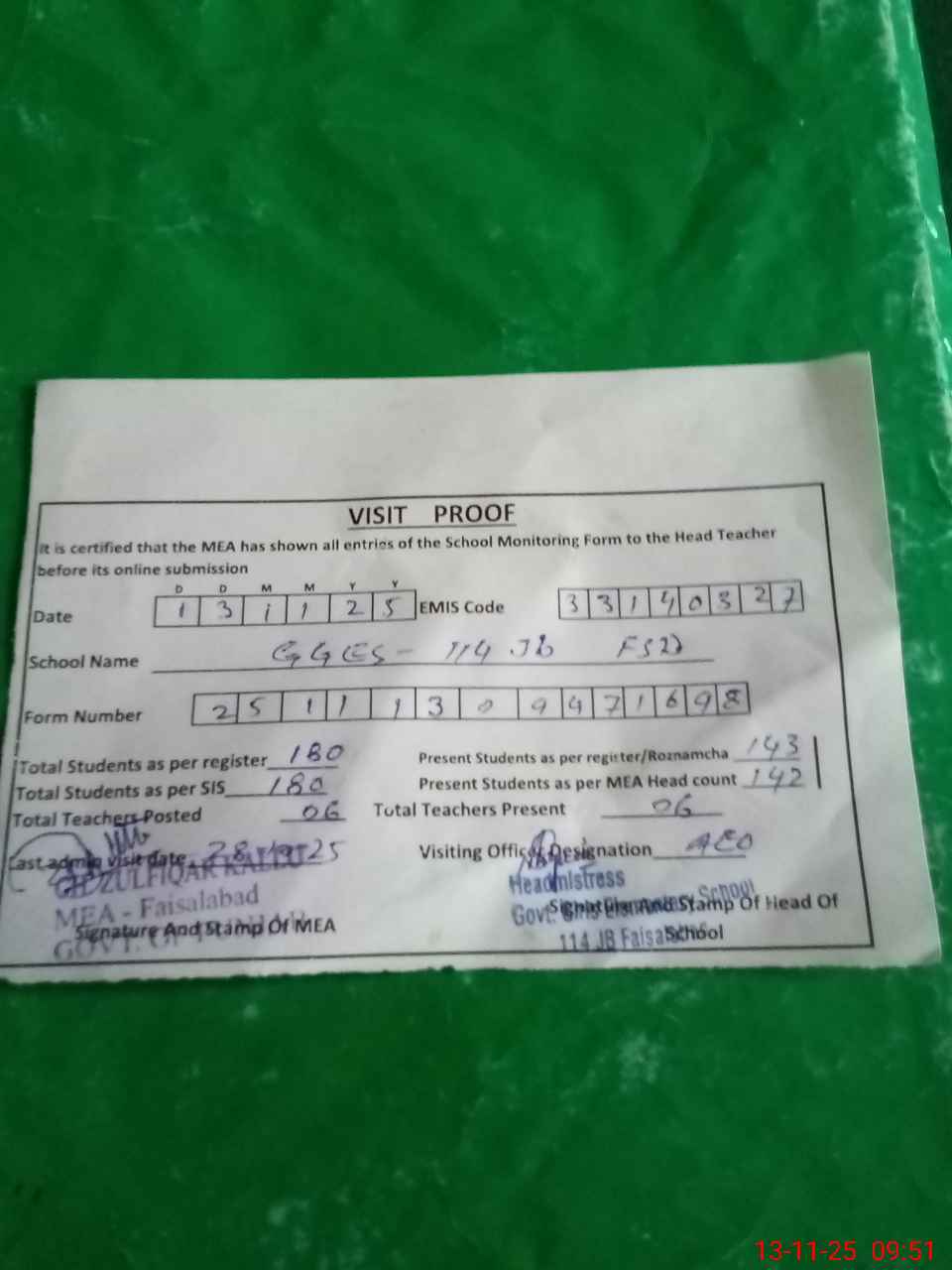 | EMIS Code: 33140327 | Name of School: GGES CHAK 114 JB | |||