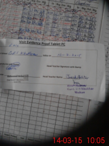 | Attendance Register | Head Teacher | MEA with School | Visit Proof |