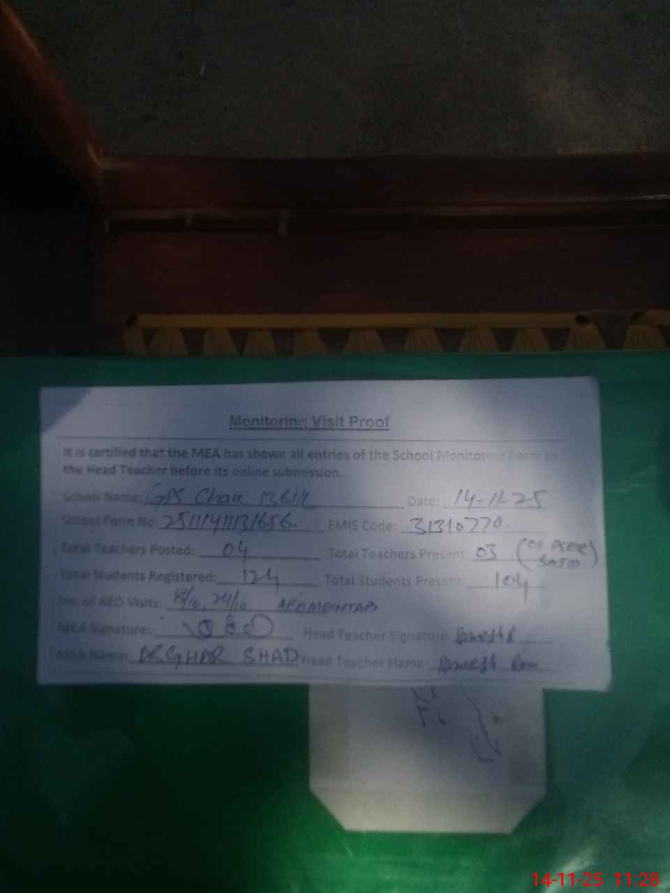 | EMIS Code: 31310770 | Name of School: GPS CHAK NO 136/1-L | |||