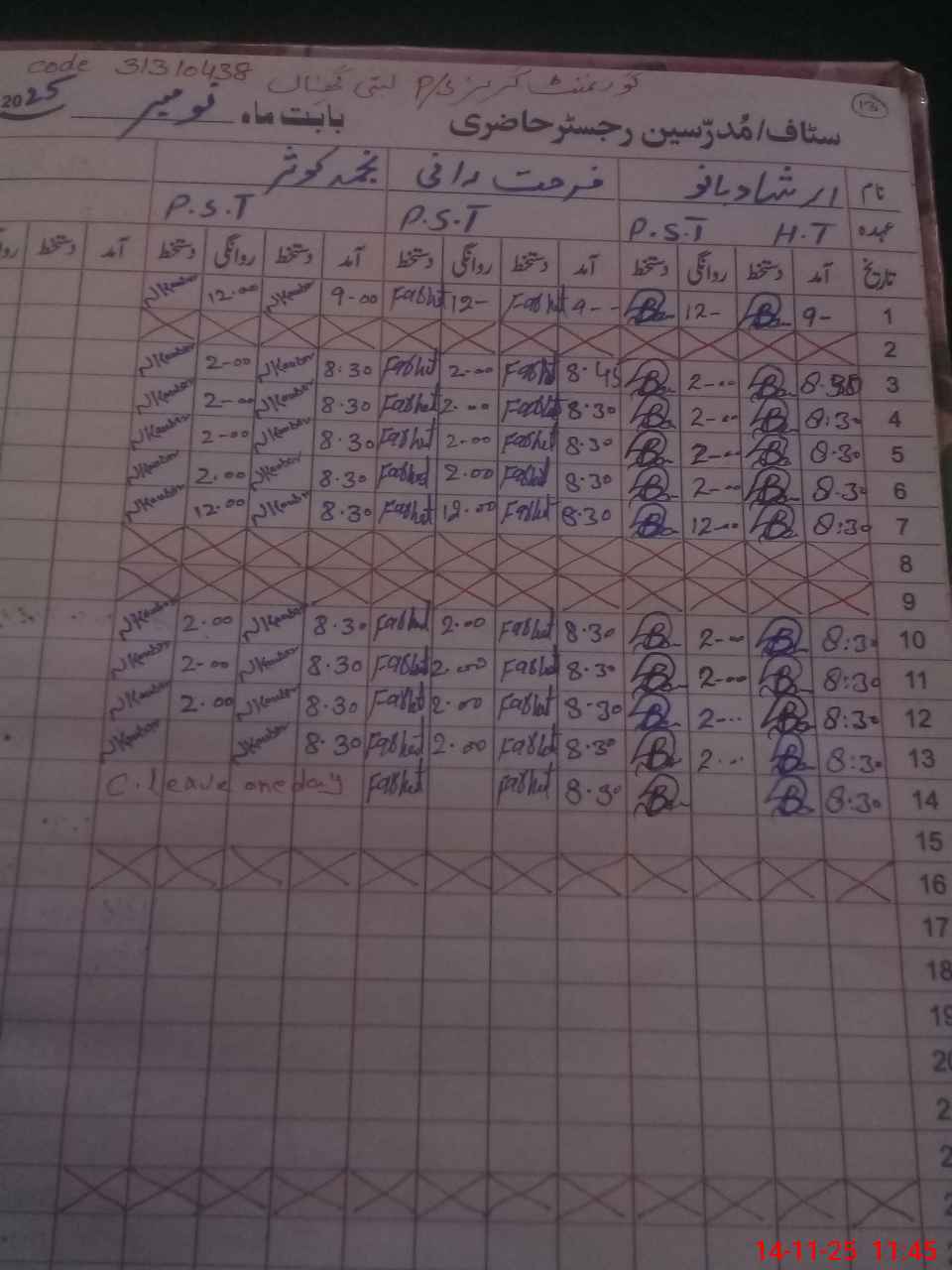 | 31**** | Na**** Ka**** | PST | Regular | 0 | 0 | 0 | 0 | 0 | 0 | 0 | 0 | 0 | Casual |