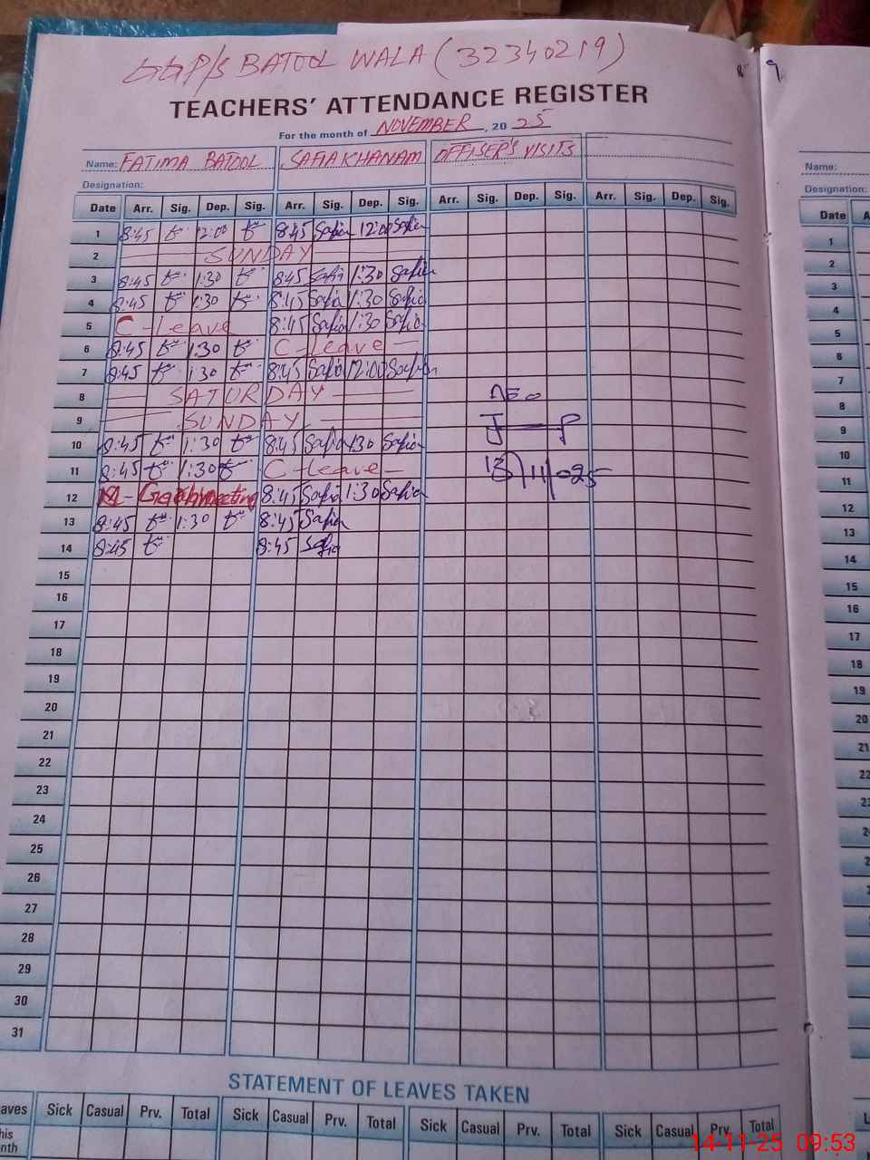 | EMIS Code: 32340219 | Name of School: GGPS BATOOL WALA | |||