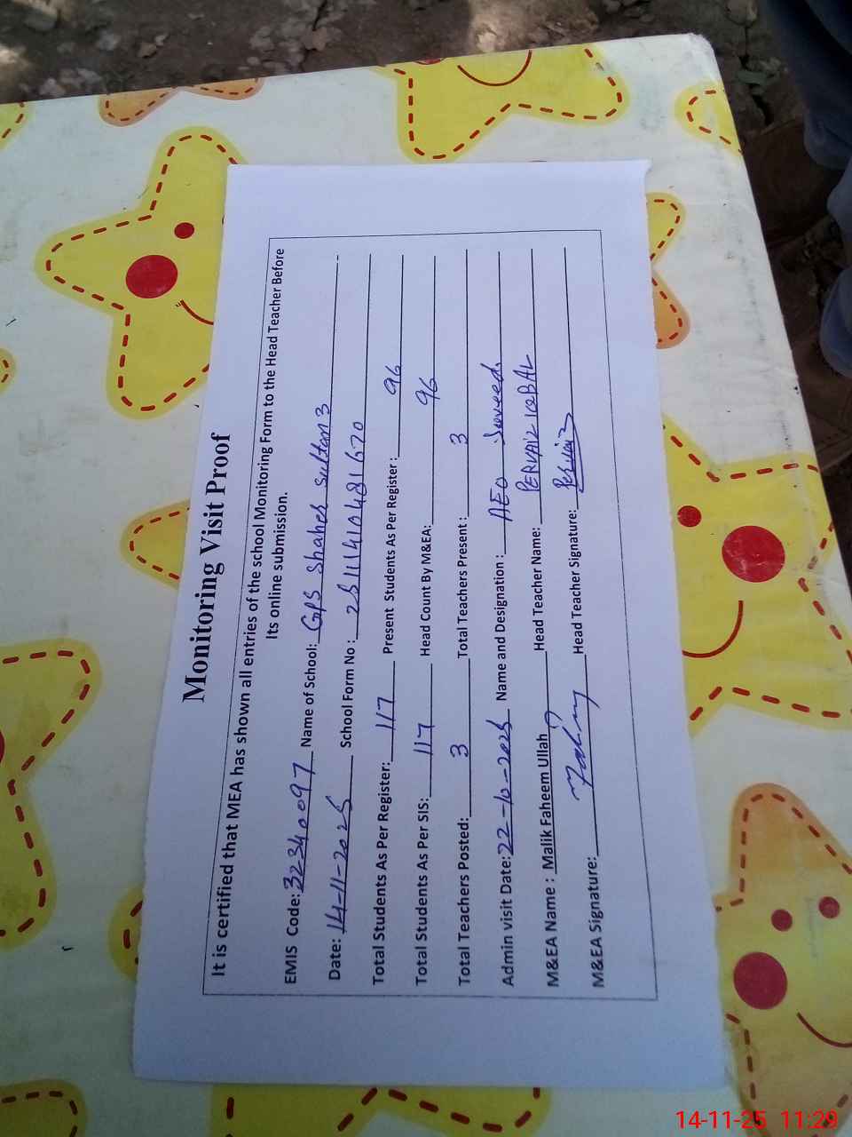 | EMIS Code: 32340097 | Name of School: GPS SHAHER SULTAN NO. 3 | |||