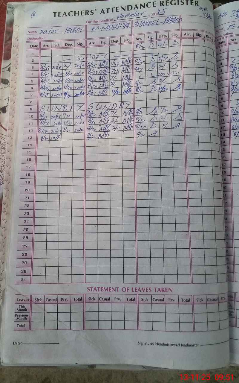 | Name: MU**** ZA**** IQ**** Designation: (School Headmaster's/Headmistress's) PST Phone/Cell Number: 03**** |