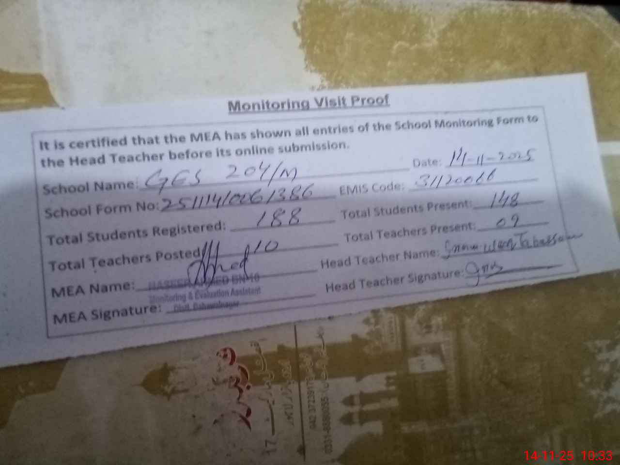 | EMIS Code: 31120066 | Name of School: GES CHAK NO. 204/M | |||