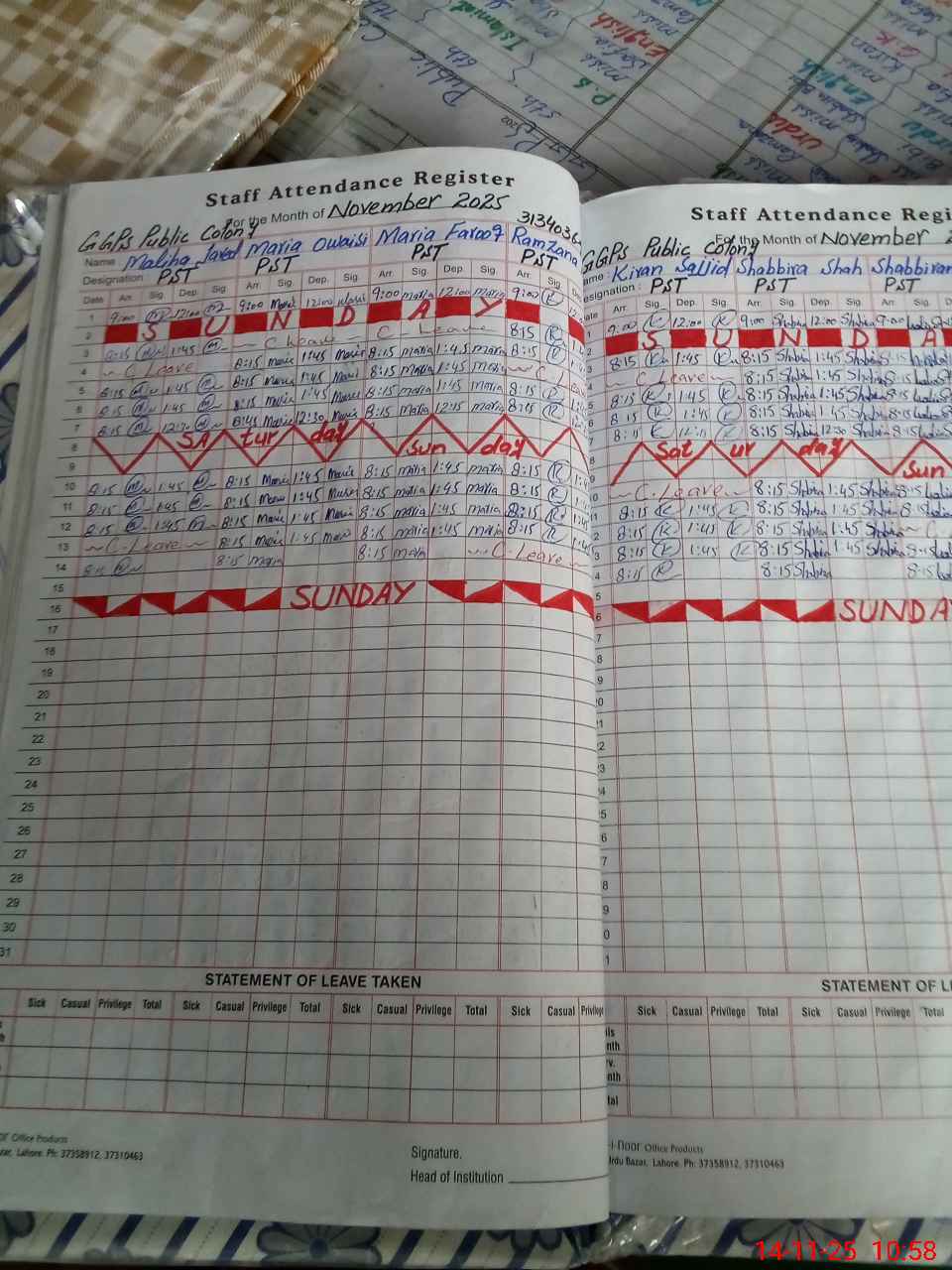 | CNIC | Full Name | Designation | R/C | Absence During Last Calender Month |