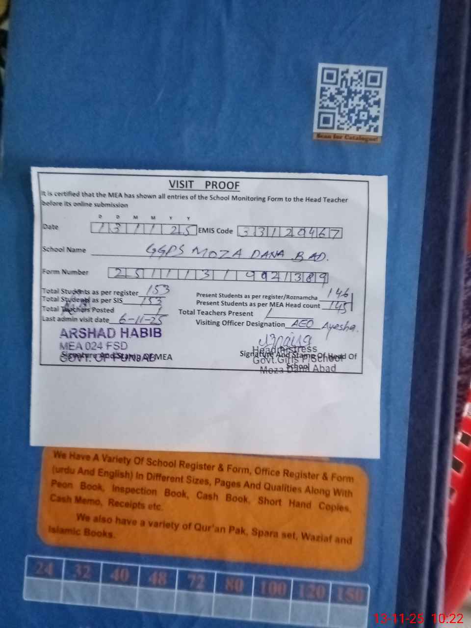 | EMIS Code: 33120467 | Name of School: GGPS MOZA DANA BAD | |||
