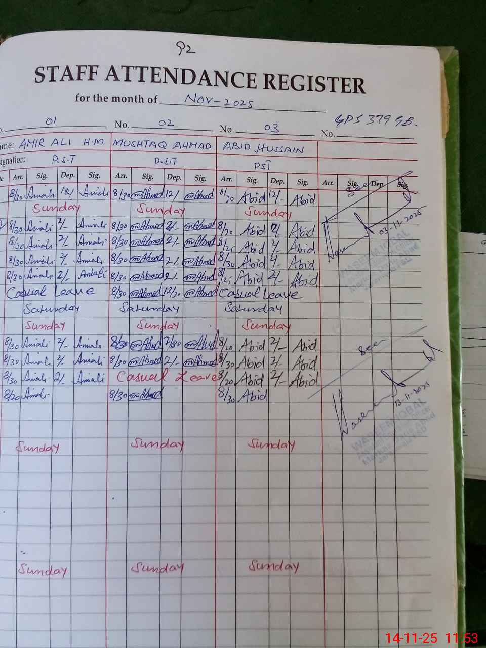 | Name: AM**** AL**** Designation: (School Headmaster's/Headmistress's) PST Phone/Cell Number: 03**** |