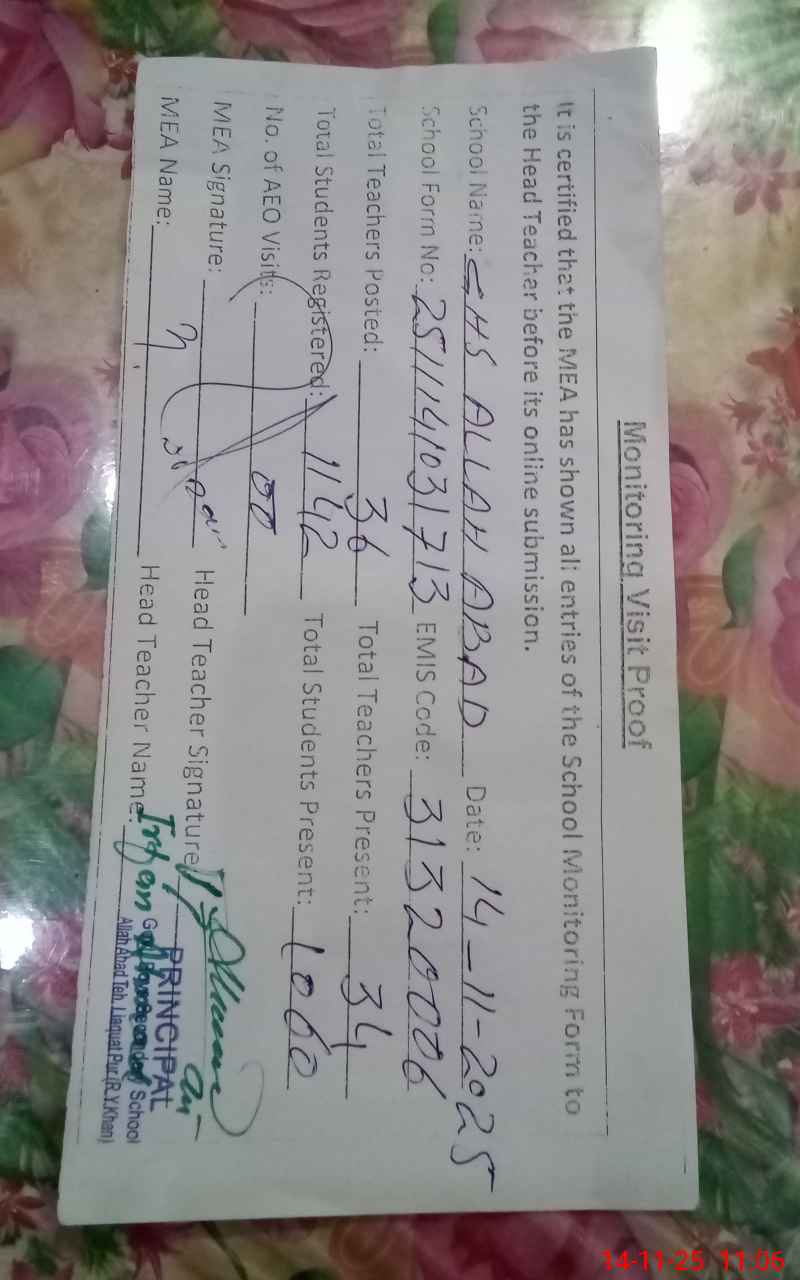 | EMIS Code: 31320006 | Name of School: GHS ALLAH ABAD | |||