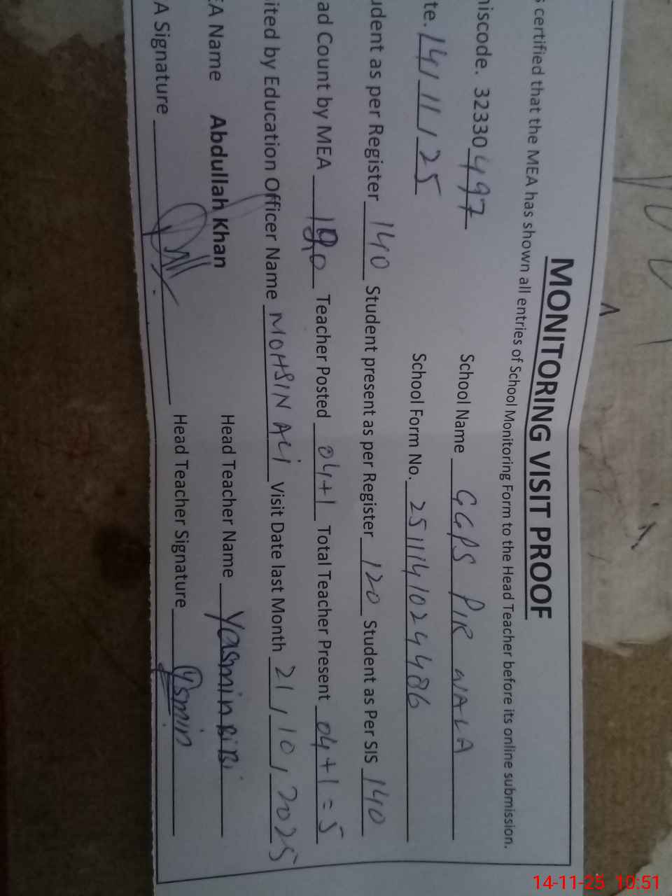 | EMIS Code: 32330497 | Name of School: GGPS PIR WALA | |||