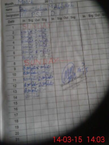 | CNIC | Full Name | Designation | R/C | Absence During Last Calender Month |