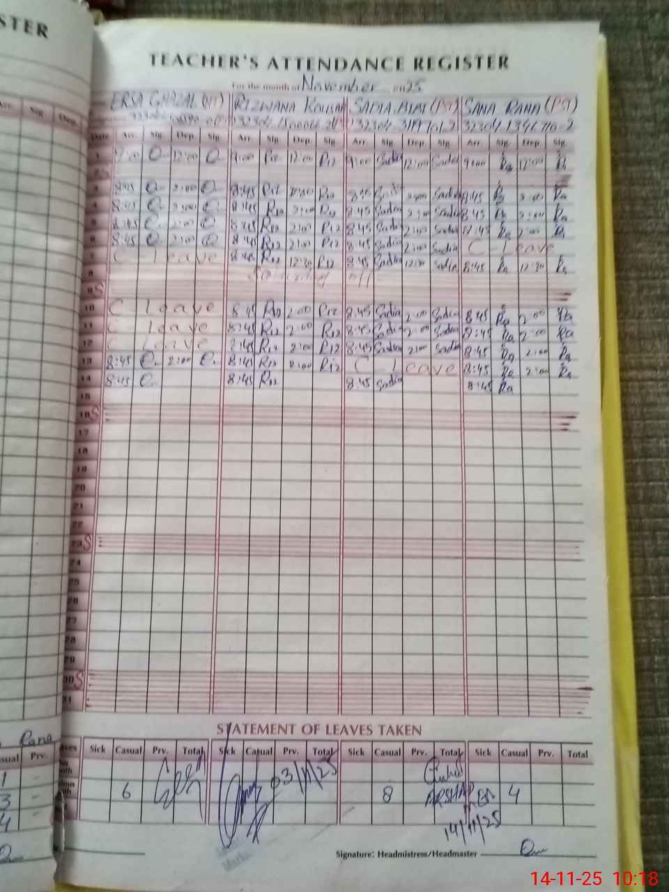 | Leave | Duty | Absent | Maternity | Medical | Ex- Pak |