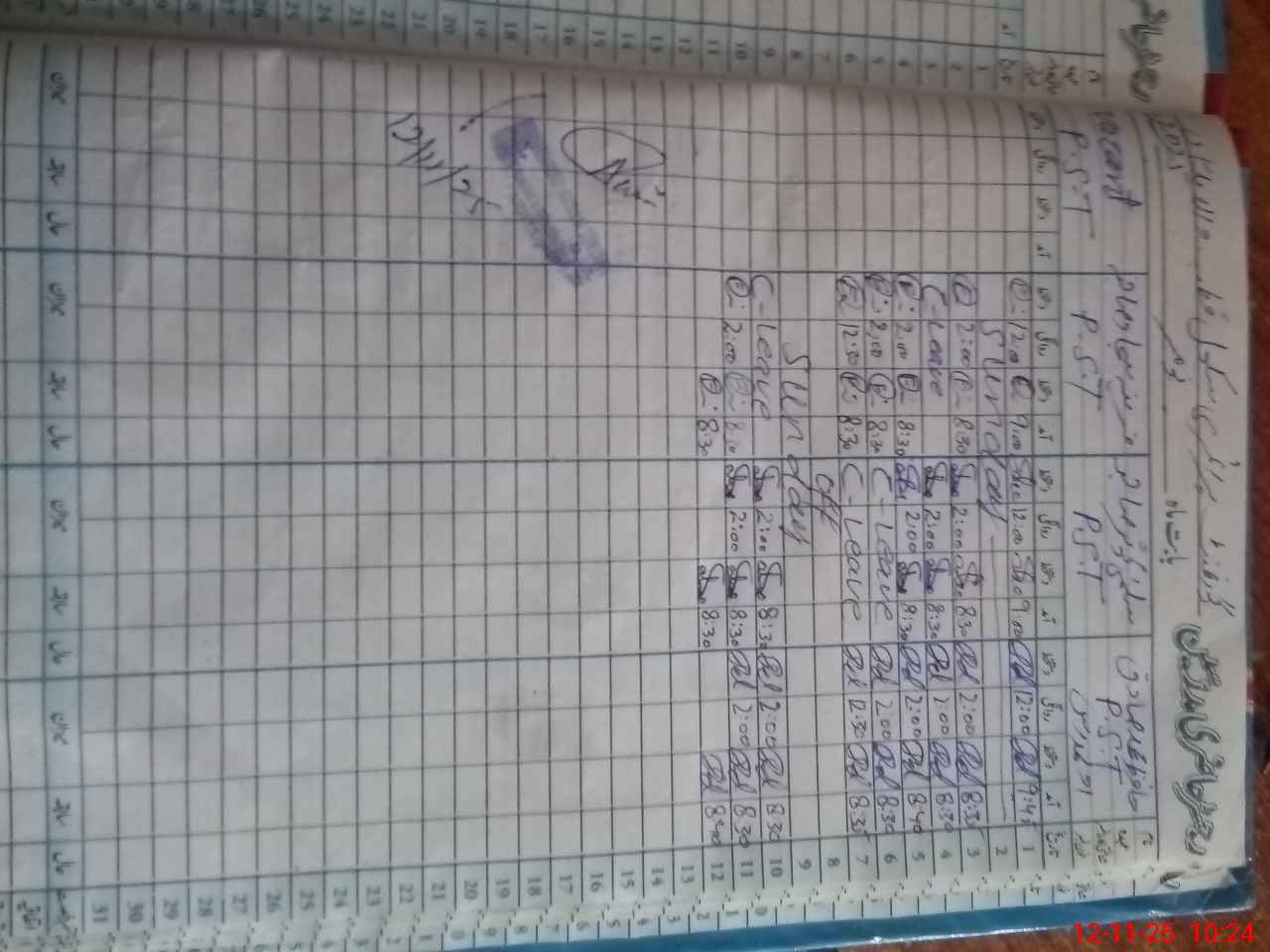 | CNIC | Full Name | Designation | R/C | Absence During Last Calender Month |