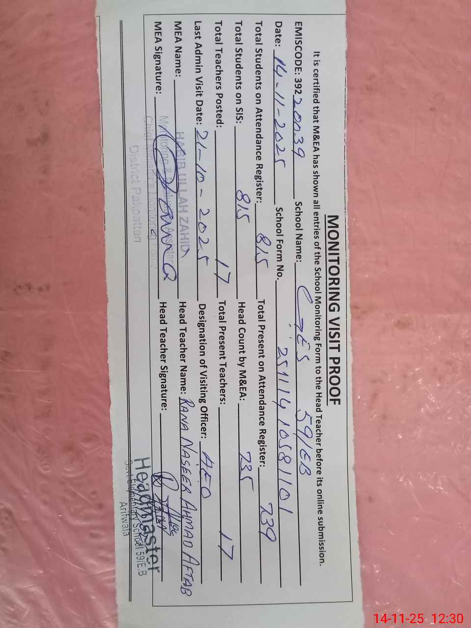 | Certified that this School was Inspected by the Undersigned MEA/DMO Today and the Information Stated Above is as Per Record. | |||||
