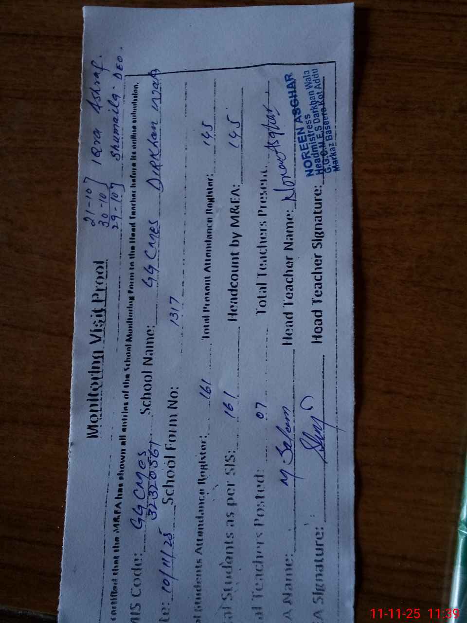 | EMIS Code: 32320561 | Name of School: GGCMES DARKHAN WALA | |||