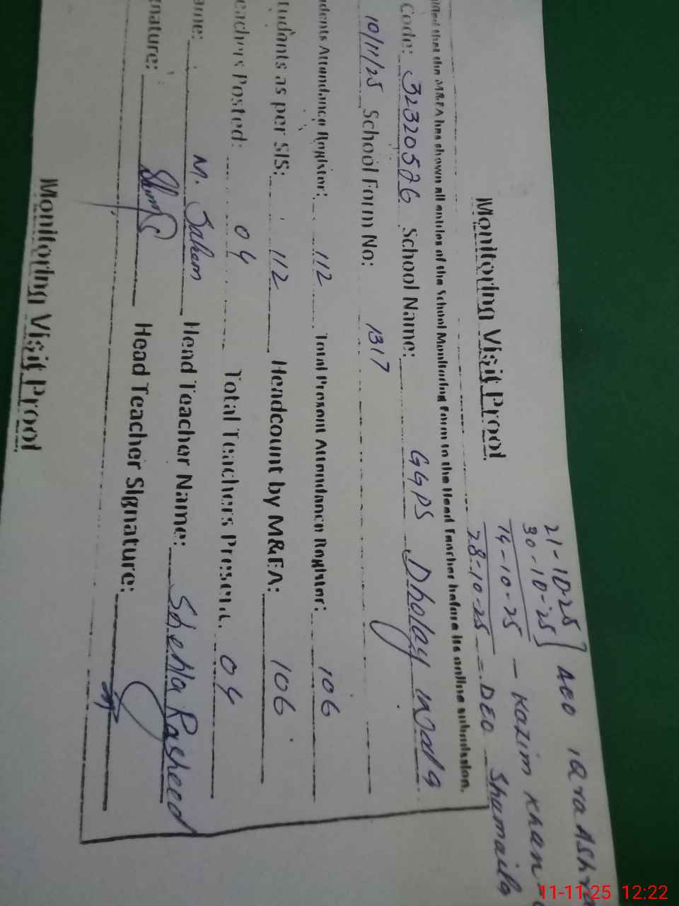 | EMIS Code: 32320526 | Name of School: GGPS DHOLAY WALA | |||