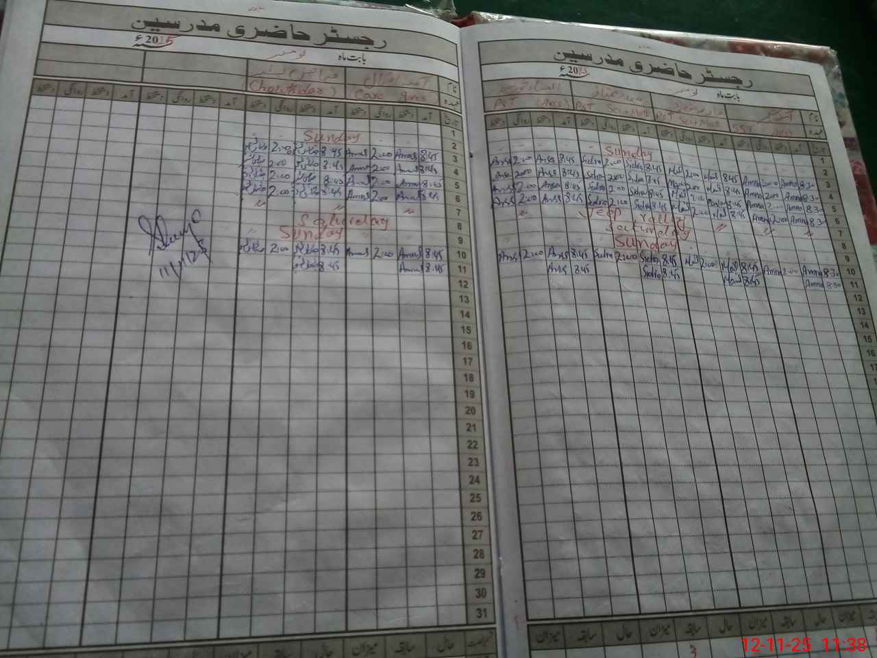 | CNIC | Full Name | Designation | R/C | Absence During Last Calender Month |