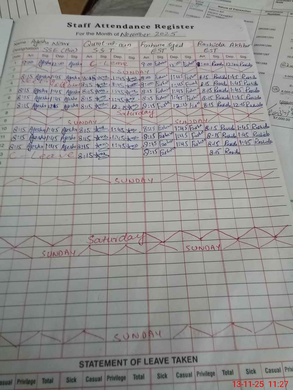 | 31**** | Ay**** Ni**** | ESE Science | Contract | 0 | 0 | 0 | 0 | 0 | 0 | 0 | 0 | 0 | Casual |