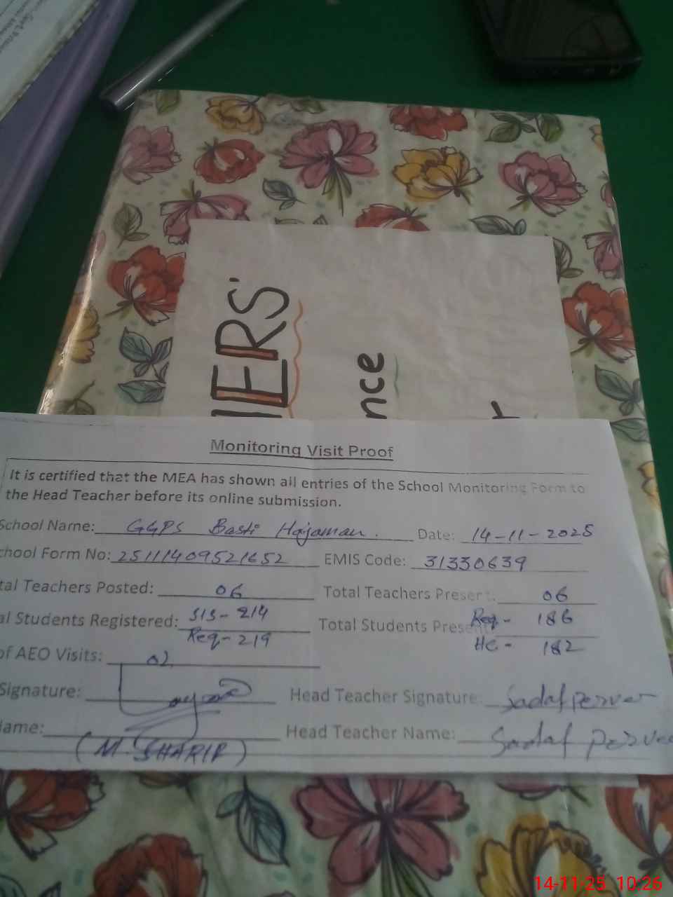 | Certified that this School was Inspected by the Undersigned MEA/DMO Today and the Information Stated Above is as Per Record. | |||||