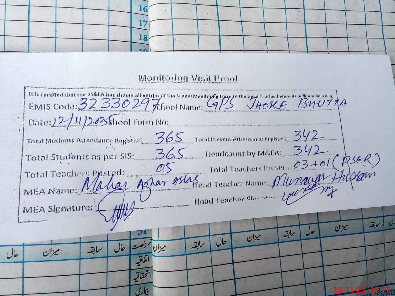 | EMIS Code: 32330297 | Name of School: GPS JHOKE BHUTTA | |||