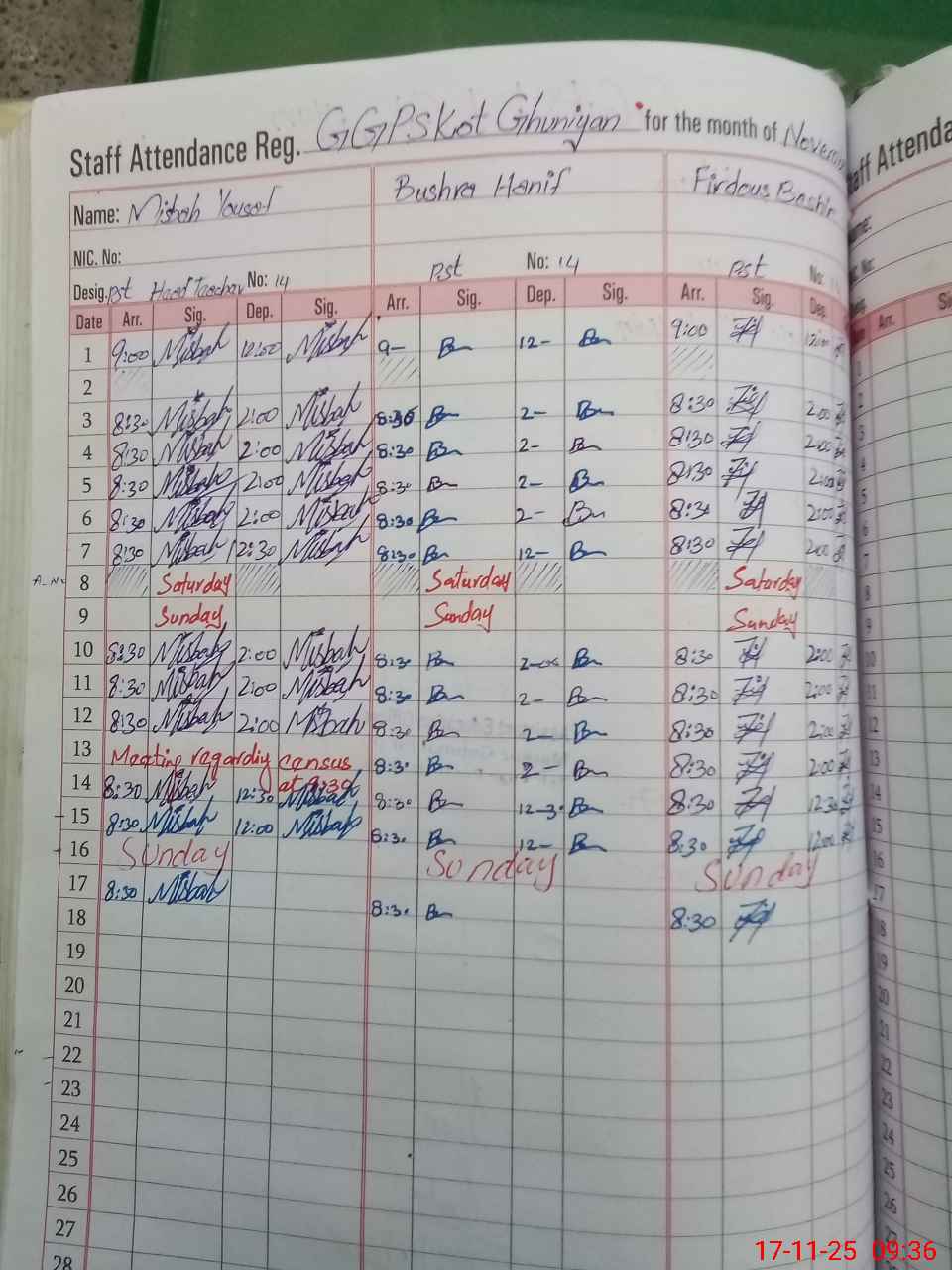 | CNIC | Full Name | Designation | R/C | Absence During Last Calender Month |