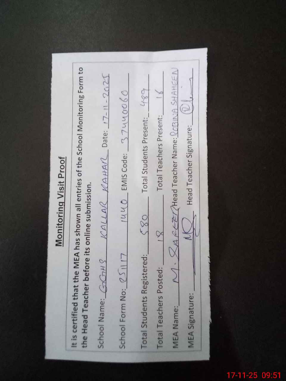 | EMIS Code: 37440060 | Name of School: GGHS KALLAR KAHAR | |||