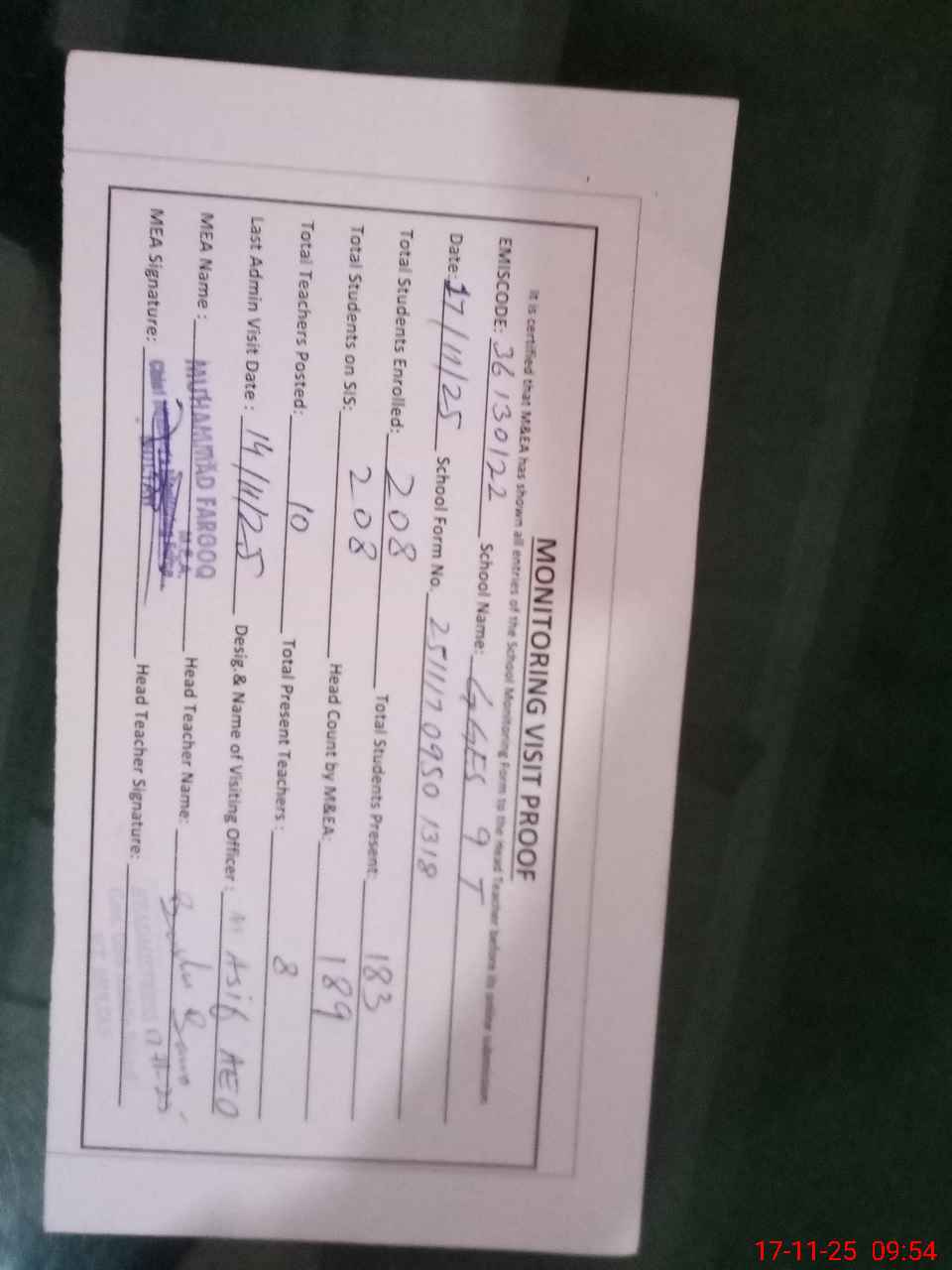 | EMIS Code: 36130122 | Name of School: GGES CHAK NO.9/T MULTAN | |||